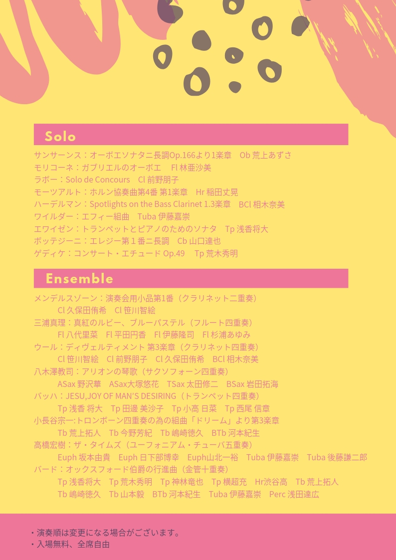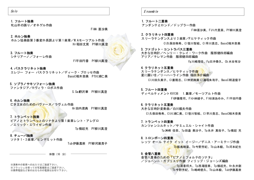 公演名 ソロ・アンサンブル演奏会2023