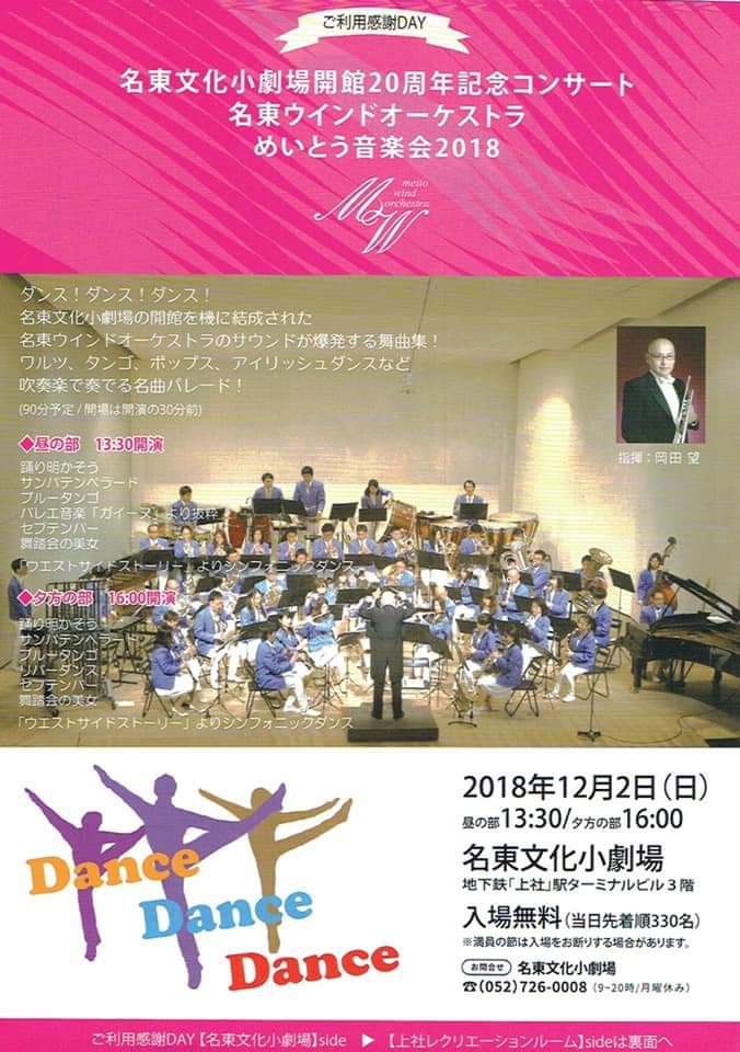 名東ウインドのサウンドが爆発する舞曲集!ワルツ、タンゴ、ポップス、アイリッシュダンスなど、吹奏楽で奏でる名曲パレード!◆昼の部